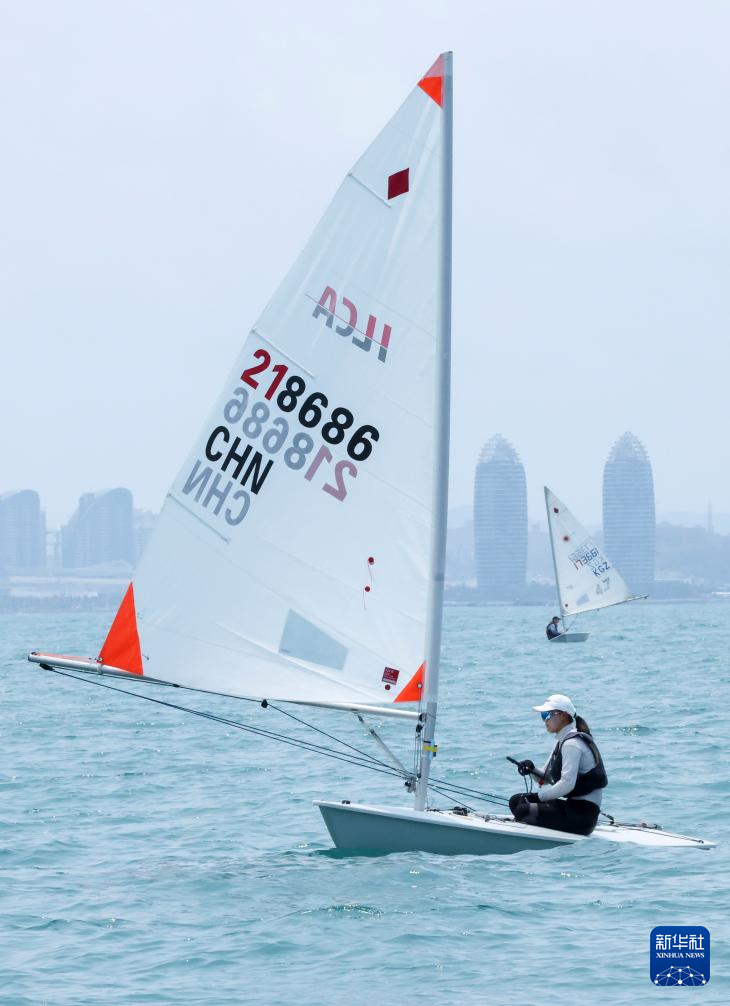 4月23日,中国选手王雅格在ILCA4帆船女子第1轮比赛中。
