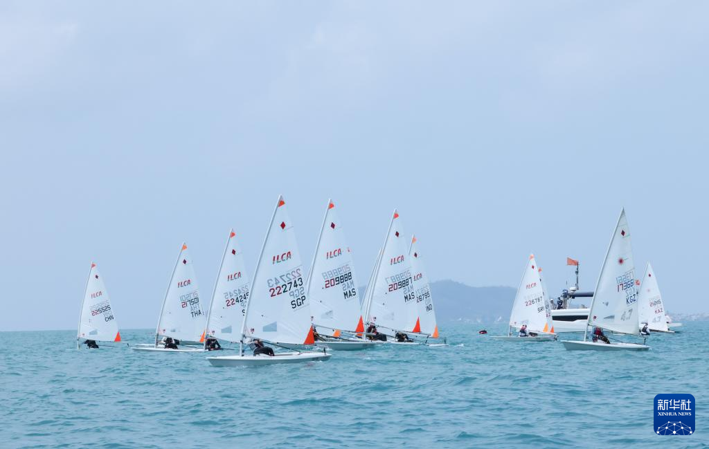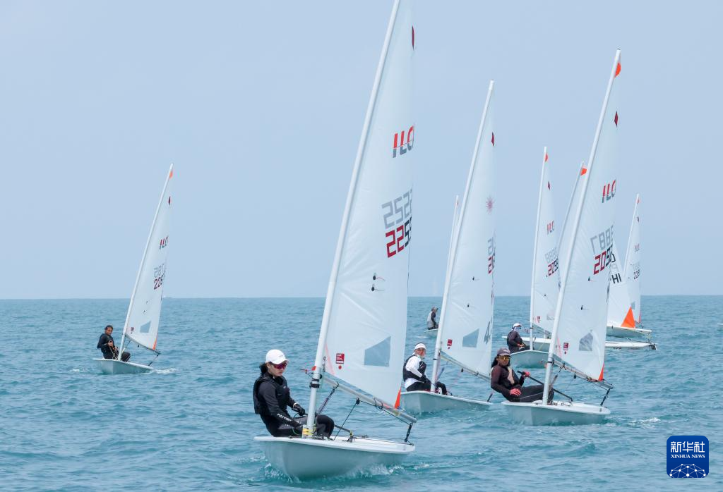 4月23日,选手们在ILCA4帆船女子第1轮比赛中。