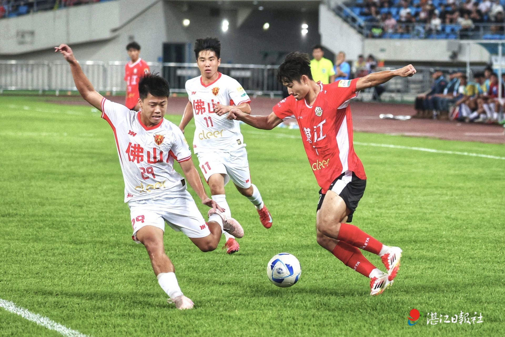 比赛伊始,湛佛两队迅速进入竞技状态,直接展开高强度攻防对抗。坐拥“魔鬼主场”优势的湛江队,凭借犀利边路突击,频繁发起攻势。佛山队也不甘示弱,凭借扎实的防守体系与灵活的反击策略,应对主队冲击,不断寻觅进攻良机。