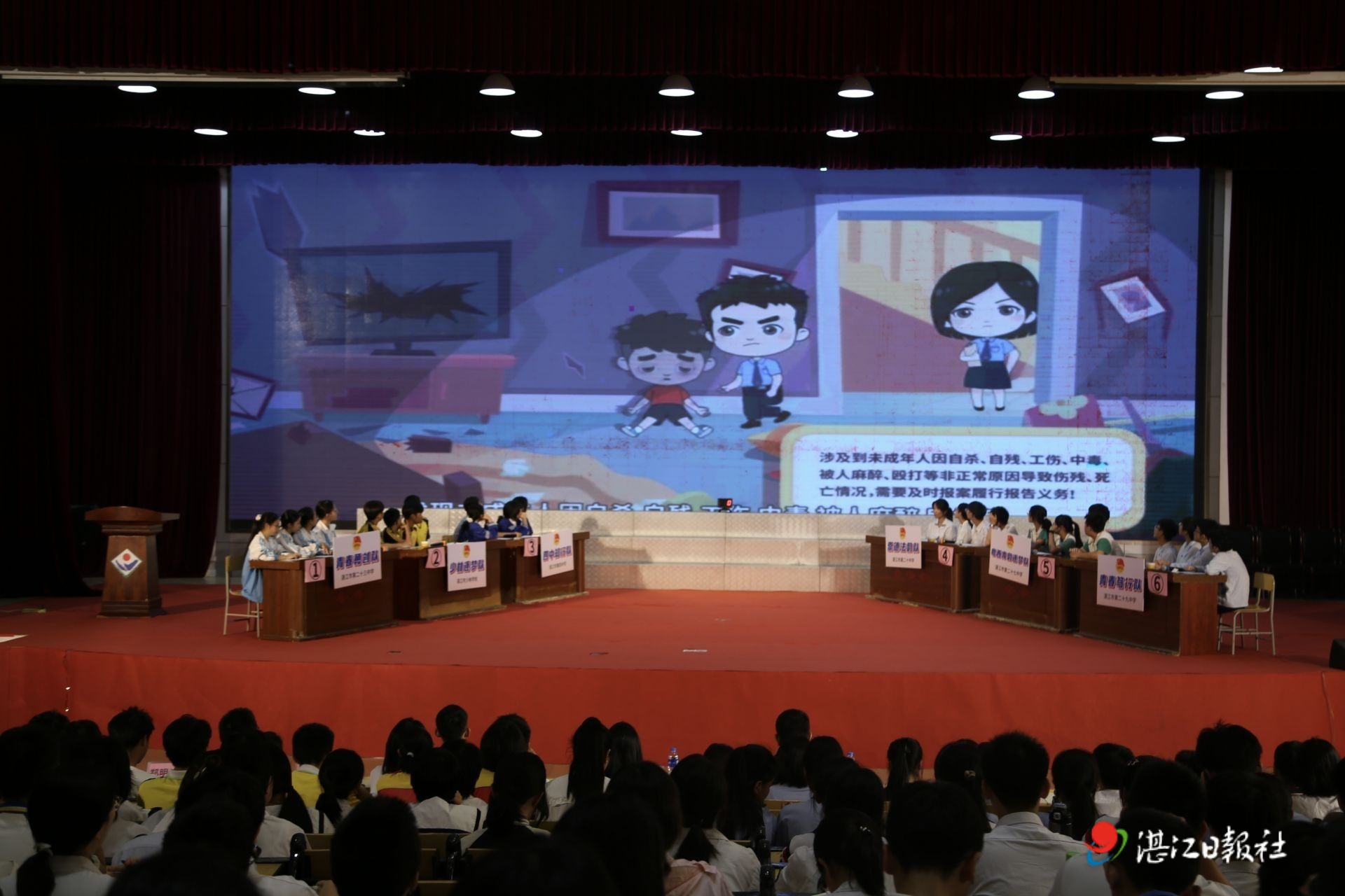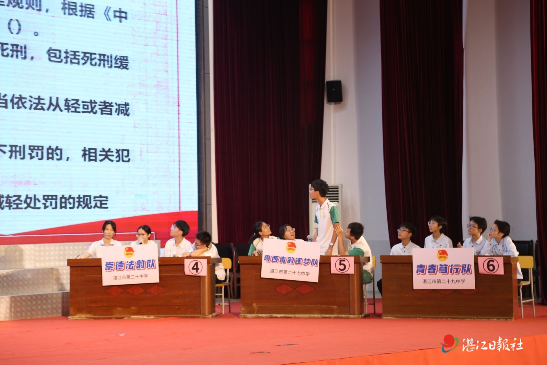 从校内选拔到初赛角逐,全区27所中学团组织踊跃组队、积极备赛,最终6支代表队凭借扎实的知识储备和默契的团队协作脱颖而出,闯入决赛。赛场上,霞山青年学子昂扬向上、崇德尚法的精神风貌得到充分展现。