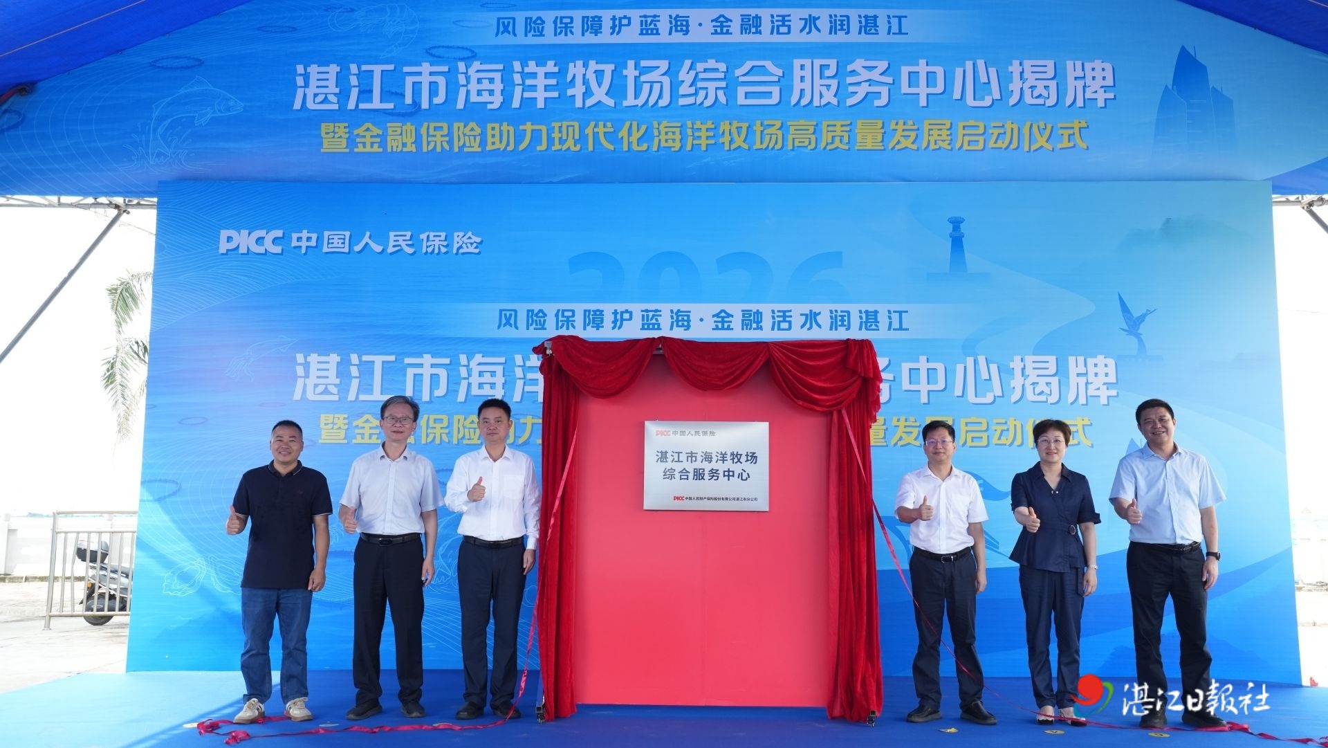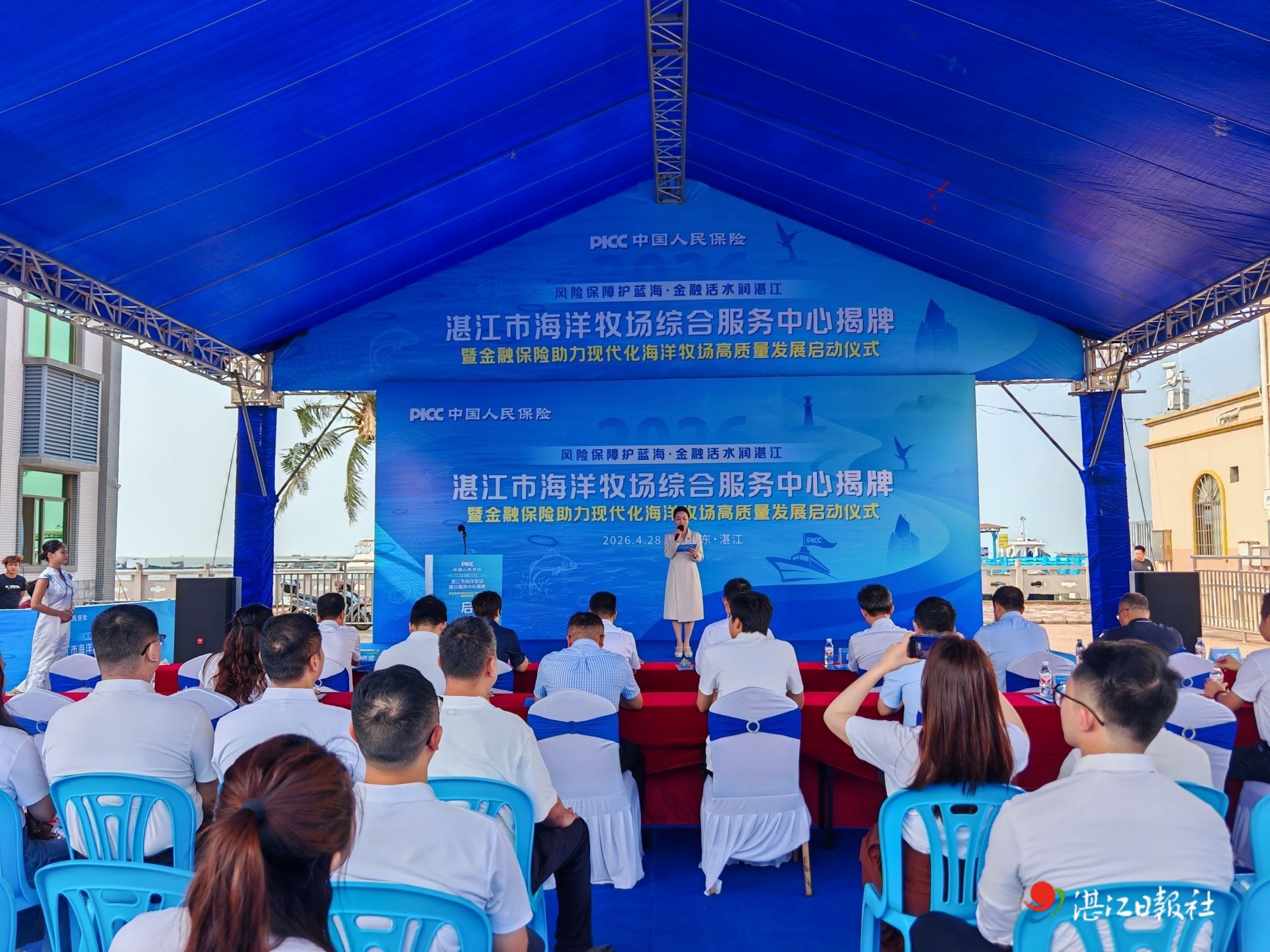 4月28日上午,湛江市海洋牧场综合服务中心揭牌暨金融保险助力现代化海洋牧场高质量发展启动仪式在湛江经开区举行。该中心由人保财险湛江市分公司打造,是全市首个集保险保障、科技监测、防灾减灾、应急服务于一体的海洋牧场专业化综合服务平台,填补了本地海洋牧场综合风险服务平台空白,为湛江建设全国现代化海洋牧场示范市提供有力支撑。