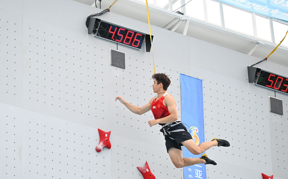 攀岩比赛在天涯海角赛区举行。当日上午的预赛中,赵一程首轮取得4秒73的成绩,第二轮表现更佳,以4秒58完赛,并打破由美国选手塞缪尔·沃森在2025年攀岩世界杯巴厘岛站创造的4秒64的世界纪录。