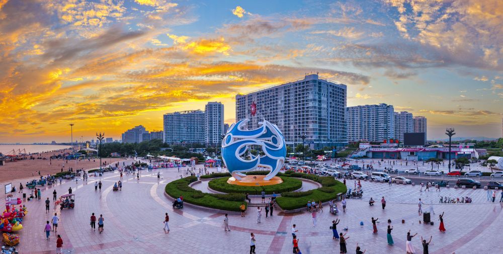 海阳海边的凤凰广场上,雕塑“海之魅”是根据第三届亚沙会会徽创作的。海阳市委宣传部供图