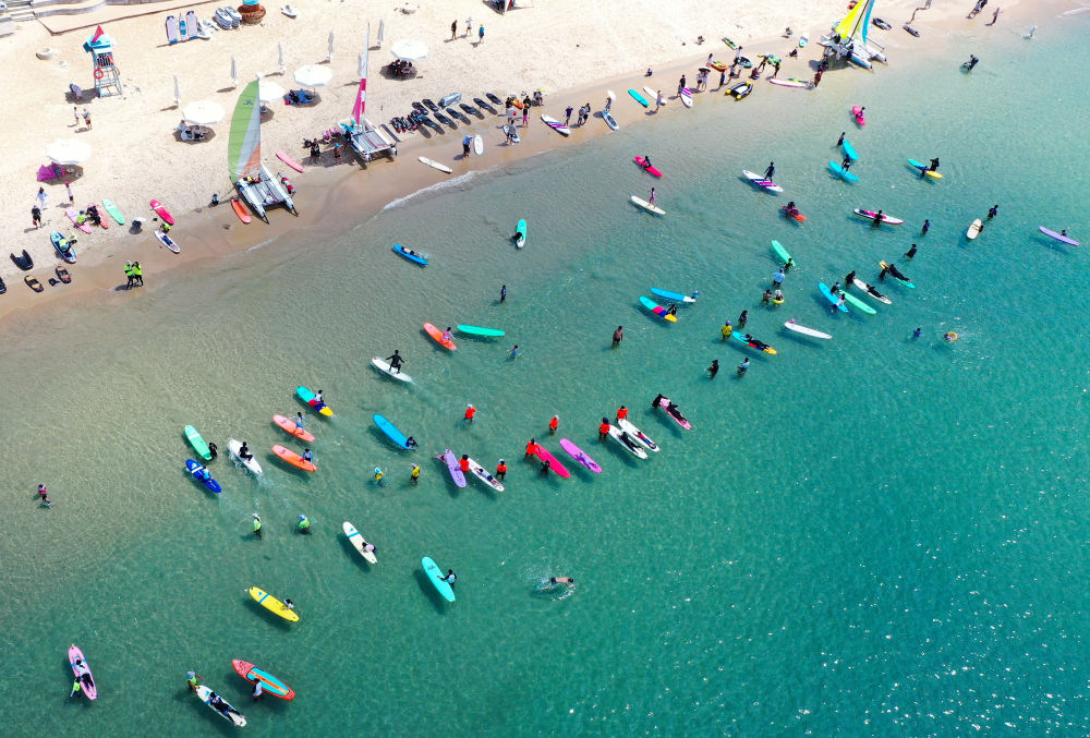 海水中,来自全国各地的冲浪爱好者争抢着浪点;沙滩上,三五成群打排球的市民随处可见。帆船、帆板、沙滩飞盘等项目,已经从“小众运动”走入市民日常生活。