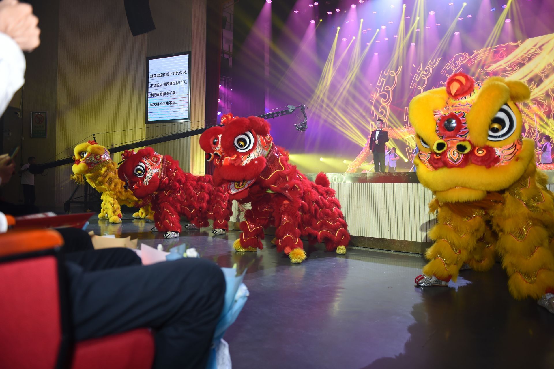 晚会正式开始前,现场氛围已然热烈浓厚。暖场环节中,精彩的专题宣传片循环播放,生动展现了遂溪工会百年发展历程与全县职工奋进风采。各基层工会组成的方阵有序开展拉歌互动,歌声嘹亮、气势昂扬,随着县领导入场,全场齐唱《歌唱祖国》,铿锵旋律瞬间点燃现场氛围,彰显出遂溪职工团结奋进、积极向上的精神风貌。