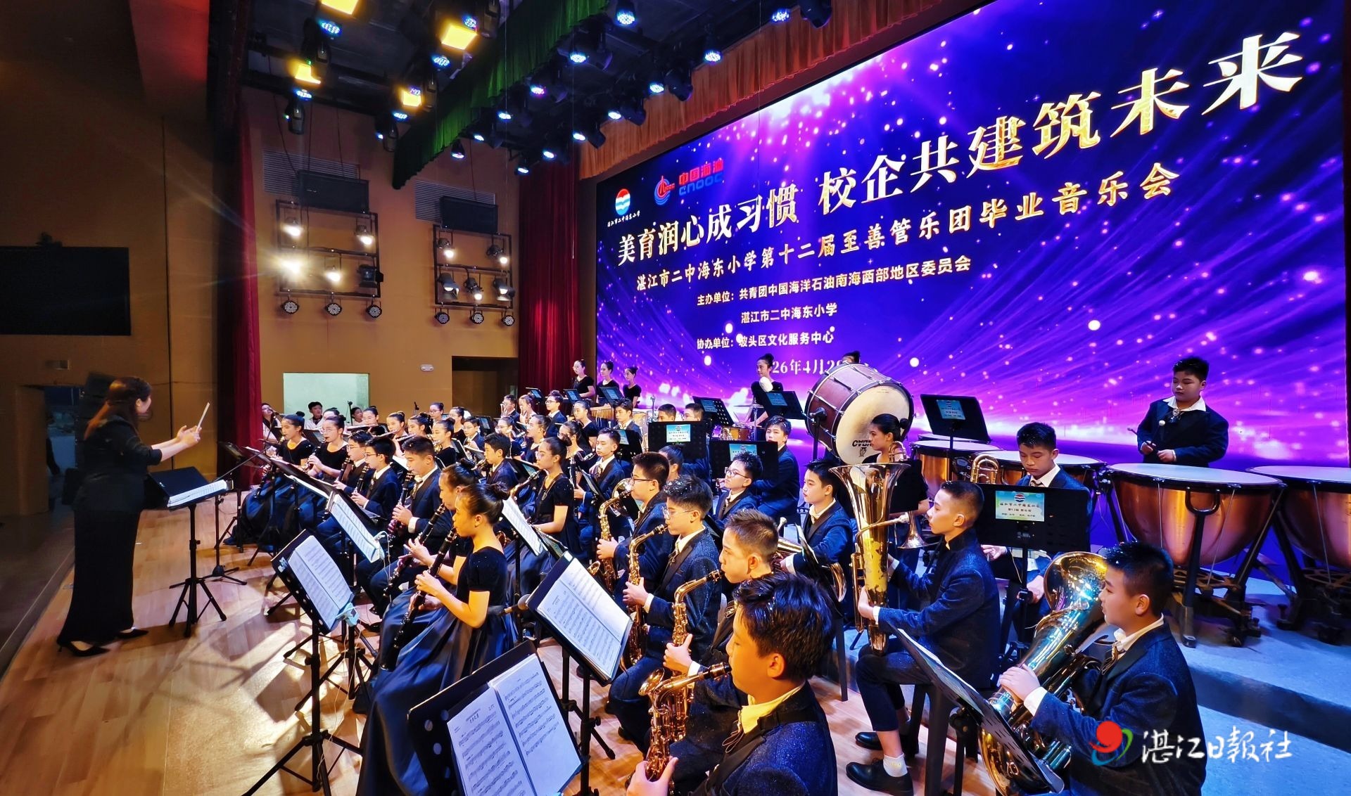 4月29日,湛江市坡头区文化服务中心乐声悠扬。由共青团中国海洋石油南海西部地区委员会与湛江市二中海东小学联合主办的“美育润心育习惯 校企共建筑未来”2026年湛江市二中海东小学第十二届至善管乐团毕业音乐会精彩上演,以艺术之力传递美育温度,彰显湛江素质教育发展成效。