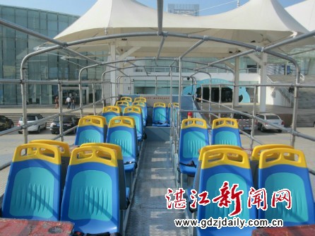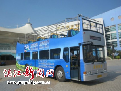 湛江新闻网讯:今天上午,搭载我市各大旅行社负责人、导游、市民和游客代表等的双层观光巴士,投入试运行。