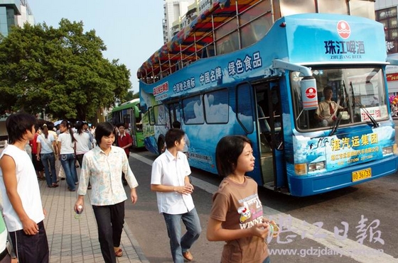 后来,湛汽运公司获得了珠啤投入资金,对双层观光巴士重新装饰,在国庆节又重新亮相了。