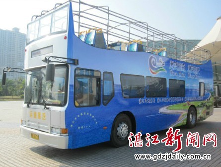 2013年10月31日,这辆市民“久违了”的双层观光巴士经过翻新,更加美观、舒适,车身上喷涂有湛江城市旅游形象宣传词“湛蓝的海,湛蓝的天”和彩色LOGO。
