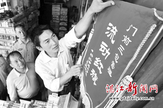 由于门前“三包”管理工作表现优秀,24日上午,位于赤坎区北桥路的11家门店首次获得由中山街道办、赤坎城管执法分局、赤坎工商分局联合颁发的“流动红旗”。该项评比工作于近日开展,对门店每周进行一次检查,每月评比轮换一次“流动红旗”,旨在促进门店做好门前“三包”工作,打造创卫亮点街。