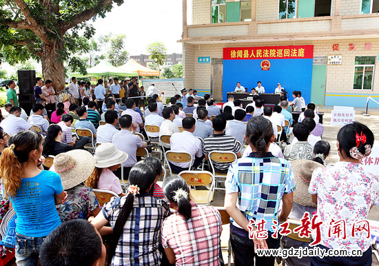 近年来,湛江市法院系统不断深化“阳光法治、法治惠民”主题实践活动,大力改革巡回庭审模式,让司法工作走群众路线,最大限度降低群众诉讼成本。近三年来,全市两级法院以渔船法庭、农家法庭、大篷车法庭、大树底下板凳法庭等方式开展巡回庭审250次,将法庭“搬”到街道社区、学校企业、沙滩渔船、田间地头、村口树下、百姓家门口,让群众足不出户便能解决纠纷。