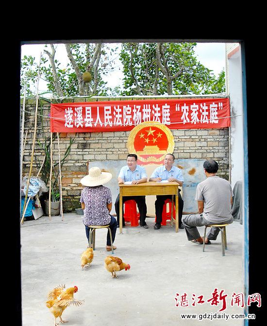 遂溪县人民法院杨柑法庭“农家法庭”,在百姓家门口开庭,让群众足不出户便能解决纠纷。