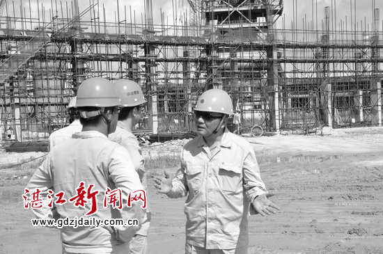 5号门是湛江钢铁基地的“门户”,几乎所有的施工所需物资都是从这里运进。当时,5号门的门卫岗亭以及闸机正在建设完善中,大门两边的厂区围墙也在紧张施工中。短暂停留向施工人员了解情况后,顾建鹤开车拐向了旁边的简易道路,实地察看围墙的施工质量。有时候刚下过大雨,简易路一片泥泞,车行驶没多久就无法前行。顾建鹤只好下车,深一脚浅一脚步行前去巡查。一圈走回来,顾建鹤的鞋子和衣服上全是泥点,黝黑的脸上,满是汗水。