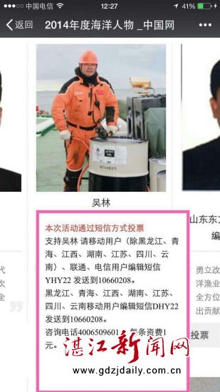 湛江新闻网讯:近日,由中国网、中国海洋报社联合主办的“2014年度海洋人物”评选活动正式启动,被誉为“破浪远征英雄水手”的“雪龙号”极地考察船大副吴林(开发区东简街道办盐灶村人)光荣入选,也是广东省唯一入选的代表,现已进入网上投票环节。这是广东省的骄傲,也是湛江市和开发区的光荣,敬请大家关注并为其投上神圣一票。投票平台是:中国网海洋频道: (http://www.china.com.cn/haiyang/node_7218844.htm) 。