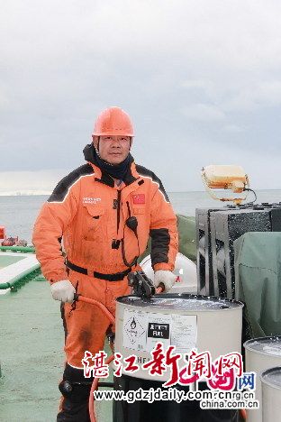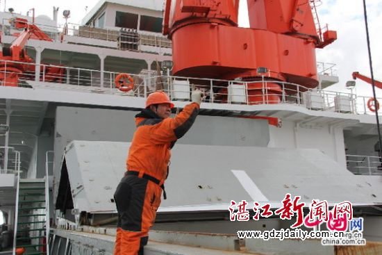 2014年11月18日,习近平主席及夫人登雪龙号科考船参观极地考察图片展,接见水手长,东海岛人吴林(图片来自中国网)
