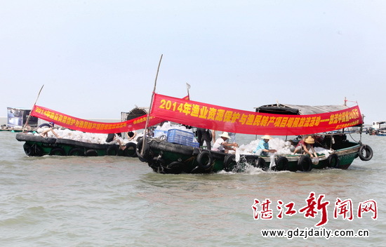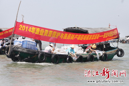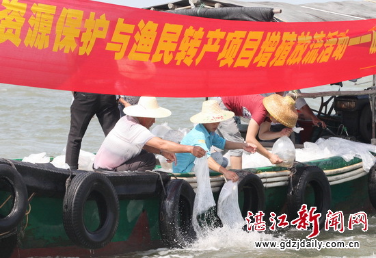 19日上午,我市组织相关部门和单位在东海岛东南码头附近海域开展增殖放流活动。当天,共放流了海洋濒危物种中国鲎苗20万只、海洋经济物种黑鲷鱼苗15万尾、黄鳍鲷鱼苗15万尾、斑节对虾2500万尾,项目资金145万元。