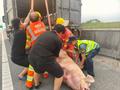 3. 3 400斤“二师兄”高速闯祸 化湛高速多部门合力化解险情0